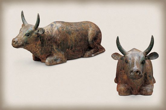 另一方面,西夏墓中隨葬制作如此精美的銅牛,說明了牛在西夏農(nóng)業(yè)生產(chǎn)中的重要地位,為我們研究西夏社會的農(nóng)業(yè)經(jīng)濟(jì)提供了一個實物佐證。敦煌榆林窟壁畫中的西夏農(nóng)耕圖,描繪出西夏同中原地區(qū)一樣的 “二牛抬杠”的犁地場景。牛耕在發(fā)展西夏農(nóng)業(yè)經(jīng)濟(jì)中無疑起了很大作用。