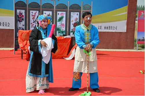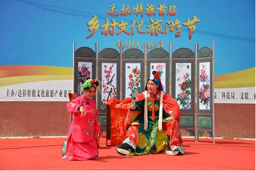 達(dá)拉特道情富有濃郁的地方色彩,生、旦、丑等行當(dāng)齊全,包括“唱、念、做、打”四功,不過(guò)由于它演唱內(nèi)容的關(guān)系,以“唱、念、做”三功為主。音樂(lè)體制主要為曲牌連綴體,同時(shí)吸收了地方小戲與北路梆子的音樂(lè)元素,又兼有地方大戲的部分唱腔曲調(diào),演唱方式以坐唱為主,樂(lè)器伴奏分為文場(chǎng)和武場(chǎng),音樂(lè)婉轉(zhuǎn)纏綿、節(jié)奏明快,曲調(diào)開朗而流暢,唱白多運(yùn)用地方方言,藝術(shù)風(fēng)格柔美而抒情,充盈了濃郁的鄉(xiāng)土生活氣息。