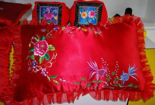 錫伯族的生活中到處是婦女們展示刺繡技藝的天地,如門簾、窗簾、枕套、桌布、掛飾、茶具蓋布等日用品,以及服裝、頭巾、鞋子等衣飾,上面繡出的珍禽異獸、奇花異草的精美圖案,展現(xiàn)了她們的聰慧才藝。