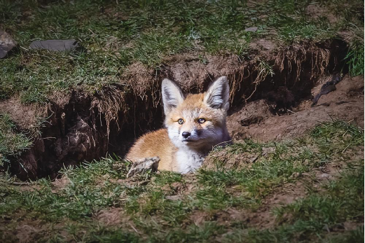 或許是肚子真的餓了,或許是被洞外草原鼠吱吱叫的聲音所吸引,膽大的小家伙又探出小腦袋來(lái),警覺地向周圍觀望。一會(huì)兒,周圍的草地上沒有了羊群,草原鼠叫聲也隨之消失,只有山鳥的歌聲清脆嘹亮,一切又顯得寧?kù)o祥和。三只小家伙又悉數(shù)出了洞門,各自蹲在洞口的草地上,眼神中依然是深深的期待。