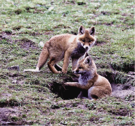 藍(lán)天白云,微風(fēng)輕漾;草地碧綠,鳥語(yǔ)花香。大自然的美景圖正在小赤狐的家園四周徐徐展開。在膽大的小赤狐的叫喚聲里,躲在洞內(nèi)的另外兩只小赤狐也壯著膽子探出頭來(lái)。不一會(huì)兒,它們習(xí)慣了周圍的環(huán)境,三只小赤狐在離洞口5米遠(yuǎn)的范圍內(nèi)嬉戲玩耍著。它們時(shí)而跳躍,時(shí)而奔跑,展現(xiàn)出本能的捕獵動(dòng)作。稍大一點(diǎn)的小赤狐騎在小一點(diǎn)赤狐的背上嬉戲玩耍,小赤狐也不示弱,奮力反擊,猶如兒童打鬧,其樂(lè)無(wú)窮。那烏黑溜圓的眼睛彎了又彎,毛茸茸的尾巴高高地翹起,身體嬌小,惹人喜愛,讓人看了會(huì)產(chǎn)生想上去抱一抱、摸一摸小赤狐身軀的念頭。