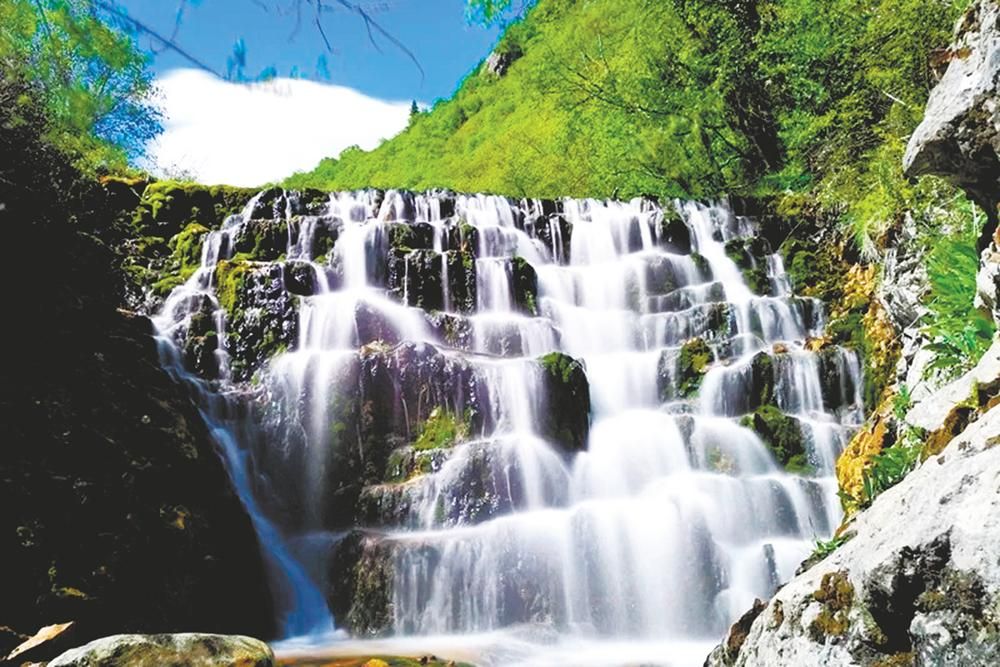 盛夏,從被金黃油菜花和綠油油的麥苗環(huán)繞的村莊,行駛到奇絕雋秀的高山峽谷,沿途群山涌翠、花木繁茂,古木參天、芳香馥郁、鳥語花香,美景讓人賞心悅目;野兔、馬鹿、馬雞等野生動(dòng)物出沒于河畔叢林,讓人感到野趣十足;達(dá)坂紅葉、十二生肖盤、神龍?zhí)镀俨?、圣母天池、藥水泉瀑布,讓人流連忘返;雪山、峽谷、奇峰、石林、角巖、懸崖、峭壁等地貌群,讓人心醉神迷,會(huì)有“車在路上行、人在畫中游”的驚艷,也會(huì)被“樹下有鮮花、花中有飛蝶,山巔云霧繞、溪澗有飛瀑”的大美所征服。