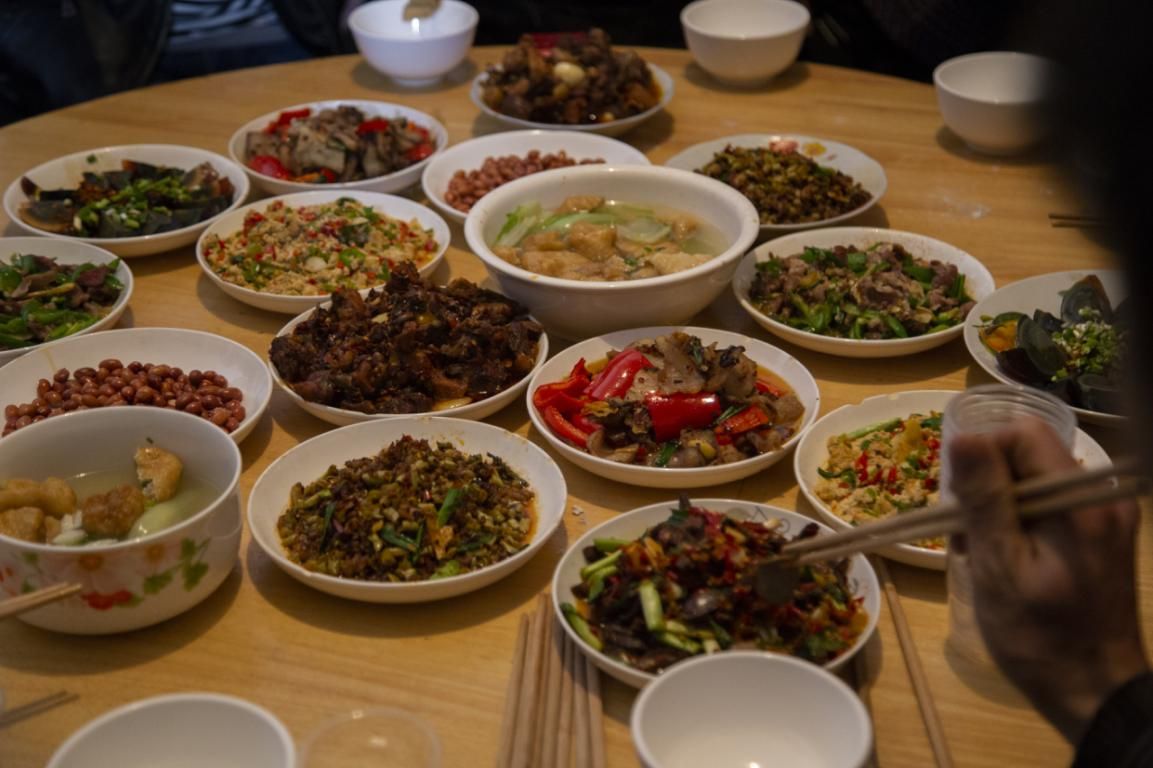 敬灶始,先在堂后做法事后,再端起文書(shū)到灶房灶頭做法事,文書(shū)燒在灶中。領(lǐng)牲法事有的戴面具,有的不戴面具。領(lǐng)牲都極具戲劇形態(tài),其中有角色對(duì)白,邊唱邊舞,壇場(chǎng)打諢,語(yǔ)言幽默,觀眾喜愛(ài)。一般都把洗凈的豬抬進(jìn)中堂,用司刀把豬尾巴割掉,掏出豬腰,請(qǐng)出殺豬匠來(lái)說(shuō)一些奉承言語(yǔ),燒紙,敬酒。領(lǐng)牲的程序,首先去豬頭,后把三絲肉、合同肉;扎案肉;豬尾巴;豬腰子,頭、蹄腳用來(lái)敬菩薩,五心肝肚也要拿來(lái)敬菩薩。
