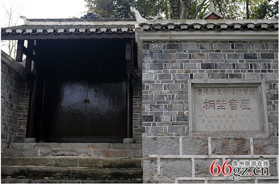 桐埜書屋為近年遺址上重建的一棟依山而建的穿斗木質明清建筑。門頭上懸掛著貴州當代著名學者、書法家戴明賢老先生用蒼勁自然的行書題寫的“桐埜書屋”四個大字匾額。走進大門,堂屋的正中央懸掛著這兒曾經的主人周起渭和夫人的畫像,令人肅然起敬。