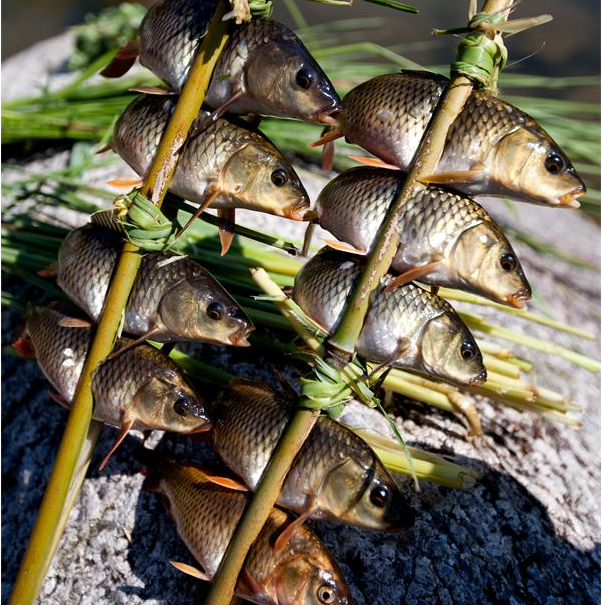 說(shuō)起燒魚,得從古代人類祖先燒肉燒魚談起。苗族先輩們?cè)陂L(zhǎng)期的遷徙跋涉中,或到西南方向的崇山峻嶺定居后,都要到山下水塘、溪流中捕捉蛙魚來(lái)充饑,維持生活。由于沒(méi)有鍋頭和碗具,只能燃燒篝火紅炭來(lái)燒烤蛙、魚至熟,然后上山采摘蕉葉、芒草來(lái)墊盛,大家圍攏在一起一同享用,久而久之便形成了野炊燒魚的習(xí)慣,一直流傳至今。