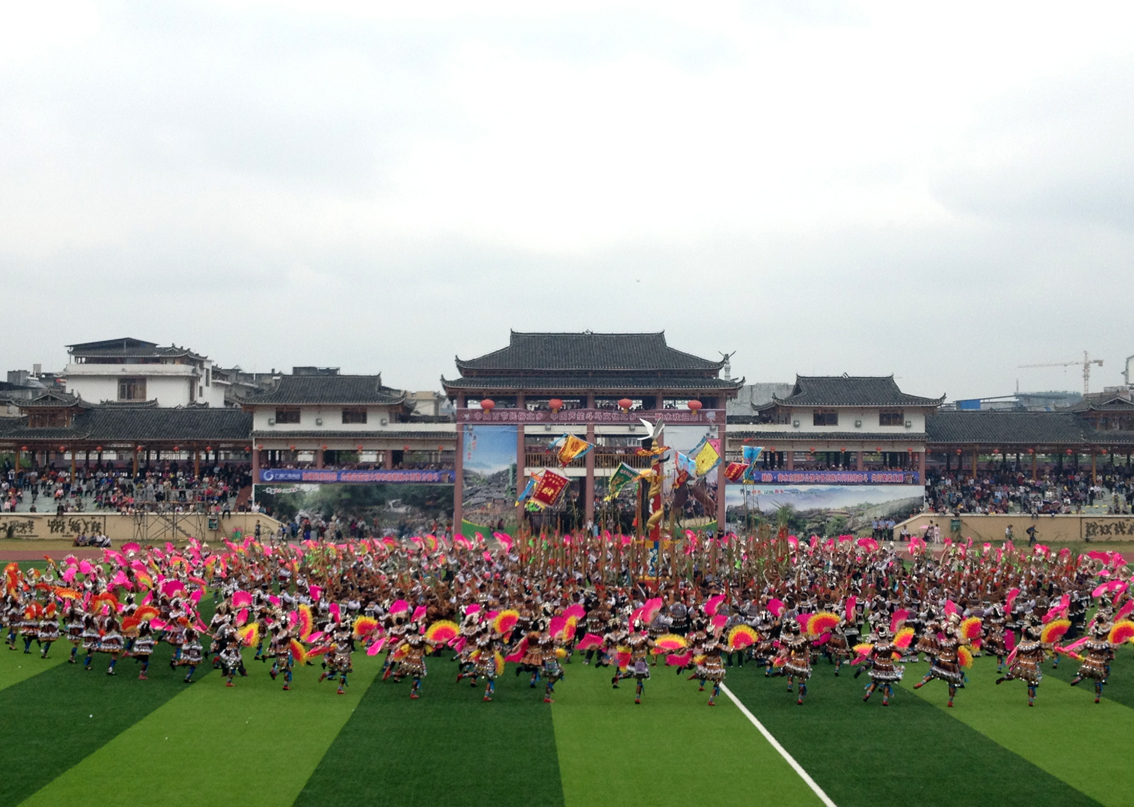 “錦雞舞”也是在銅鼓和蘆聲伴奏下,由中年以上的苗族婦女在銅鼓坪上表演的傳統(tǒng)祭祀性舞蹈,這個舞蹈充分體現(xiàn)了苗族人民自古對飛鳥圖騰的崇拜和向往。她們頭戴銀飾,身穿黑色短上衣,腰間束若干條五彩鑲邊,末端墜掛銀牌和流蘇似錦雞華麗羽毛的彩條長裙,臀部被高高墊起效仿錦雞高翹的尾羽。她們圍圓圈起舞,舞蹈動作緩慢,在或向前或向后的舞步中,模仿錦雞頻頻“踱步”“旋轉(zhuǎn)”和“飛翔”,隨動作變化而使腰間彩帶起落飄散的舞姿,把人們的心又帶回到遠古時代。象征鳳凰的“錦雞舞”,充分表現(xiàn)了苗族婦女為祈求民族富足和五彩人生虔誠而肅穆的場面。