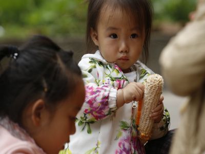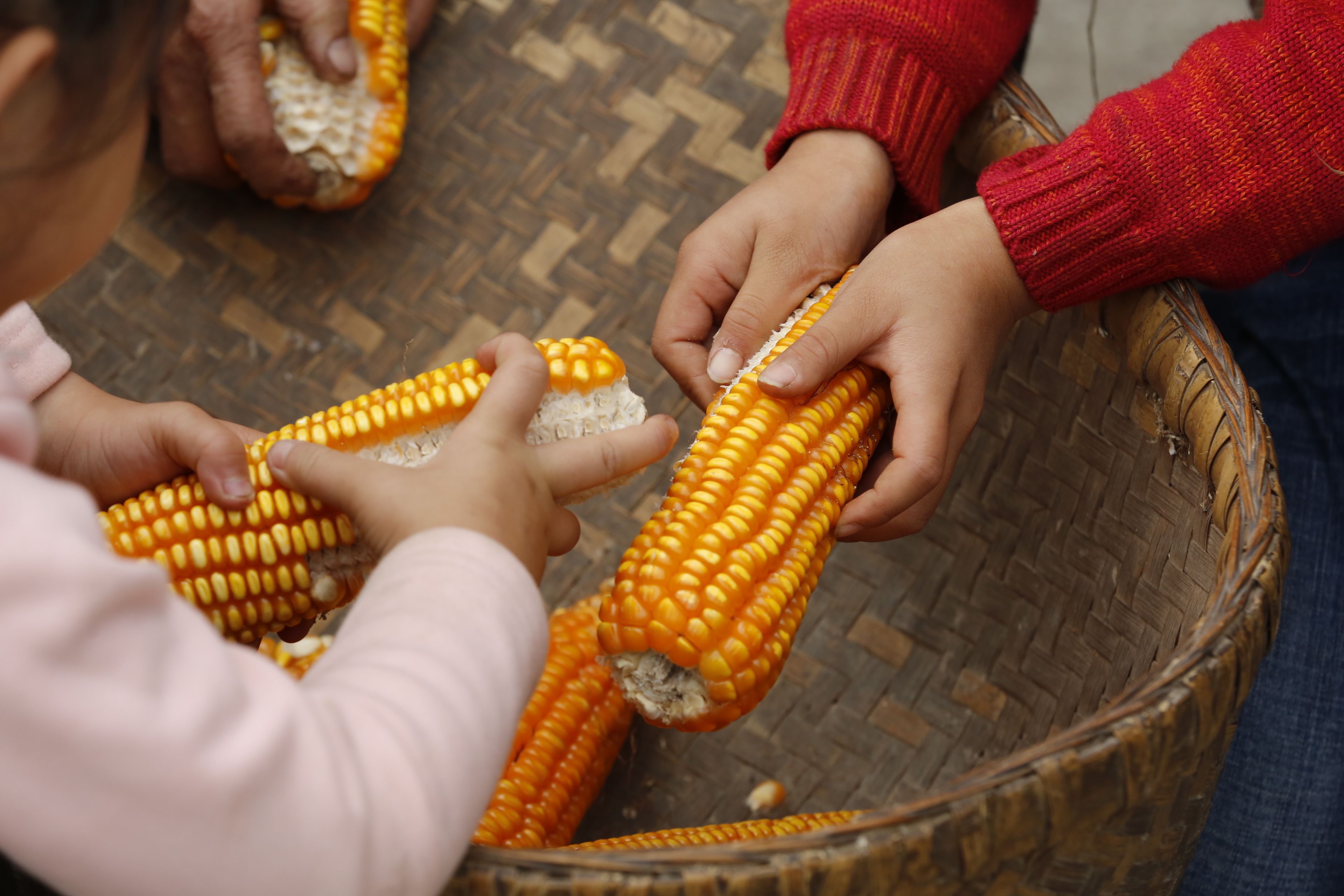 苗族老年人與兒童剝玉米3
